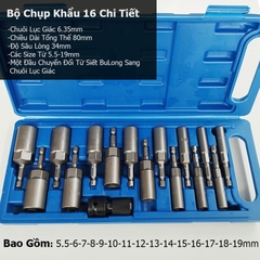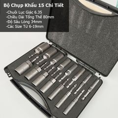 Bộ Đầu Khẩu Chụp Sâu Lòng Dài 80mm Chân Lục Giác Lắp Máy Khoan Bắn Vít 15 Chi Tiết