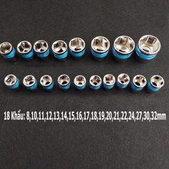 - 17 đầu tuýp kích thước: 10mm - 32mm.
