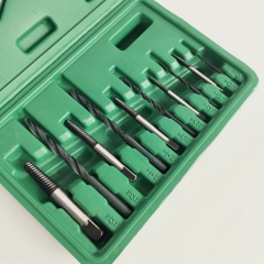 - Số lượng chi tiết: 11 món (1 tay quay M3-M12, 5 mũi khoan, 5 mũi nhổ bu lông)