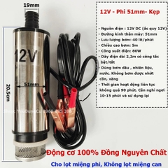 - Bơm chìm mini 12v/24V chỉ có đường kính 3.8cm 5,1CM nên có thể cho lọt vào các khe, lỗ hẹp như đường ống, miệng phi dầu